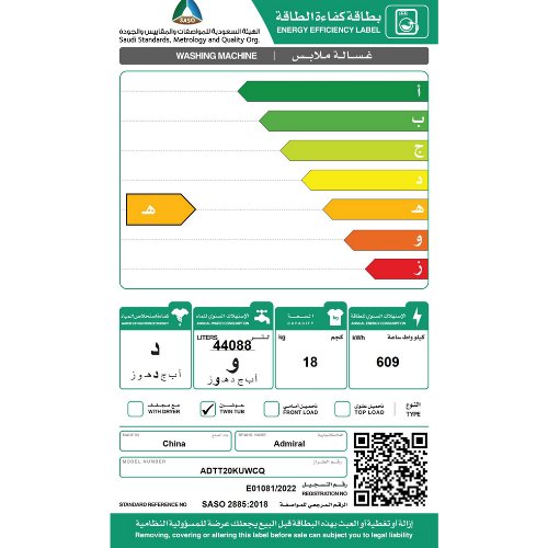 غسالة ادميرال حوضين 18 كيلو – أبيض