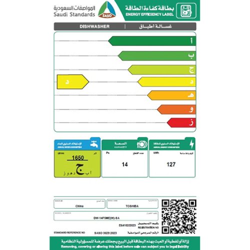 غسالة اطباق توشيبا 14 مكان – 6 برامج – أبيض