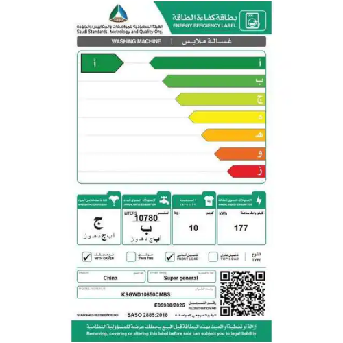 غسالة اوتوماتيك أمامية سوبر جنرال 10 كيلو غسيل – فضي |