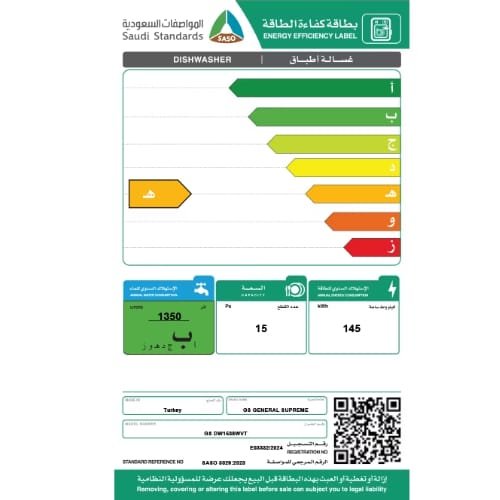 غسالة صحون جنرال سوبريم 15 مكان – 8 برامج – ابيض |