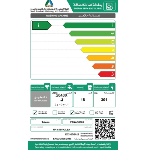 غسالة فتحة امامية باناسونيك 18 كيلو – انفرتر – سلفر :