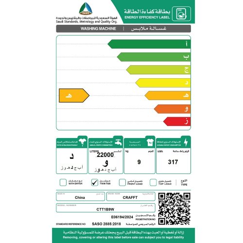 غسالة ملابس حوضين 9 كيلو كرافت 5 ك تجفيف – أبيض :