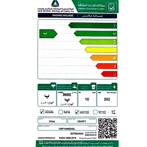 غساله اتوماتيك 7 كيلو كرافت فتحة امامية – أبيض