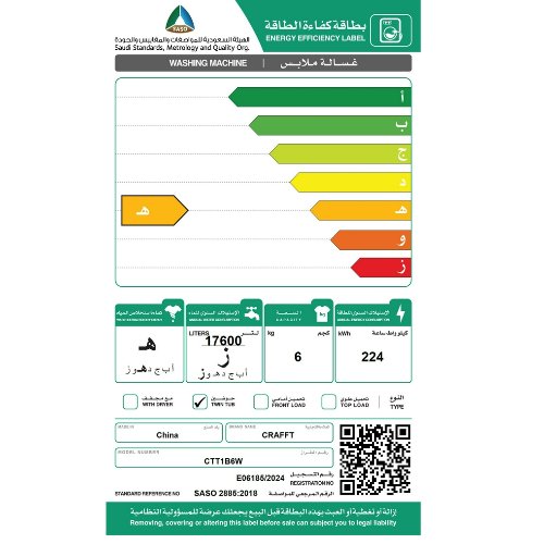 غساله كرافت حوضين 6 كيلو كرافت 3 ك تجفيف – أبيض :