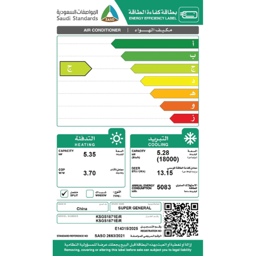مكيف اسبلت 18 وحدة سوبر جنرال الترا – حار و بارد |