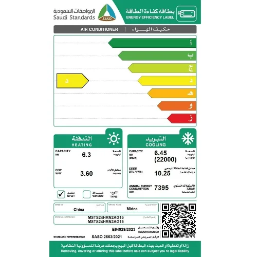 - قدرة التدفئة: 6.3 كيلوواط