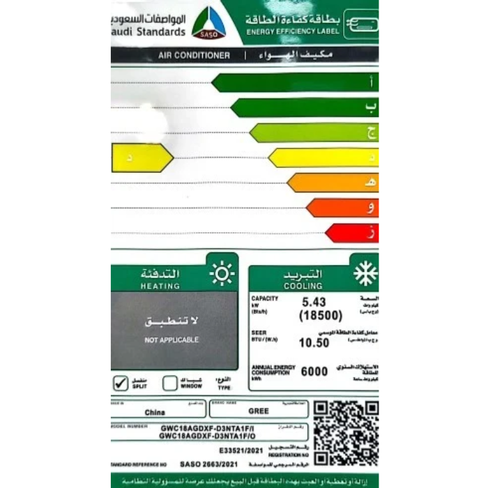 مكيف سبليت جري بولر 18500 وحدة واي فاي – بارد :
