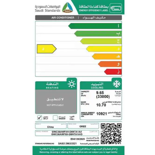 مكيف سبليت 36 وحدة جري اي ماكس – WI FI – بارد |