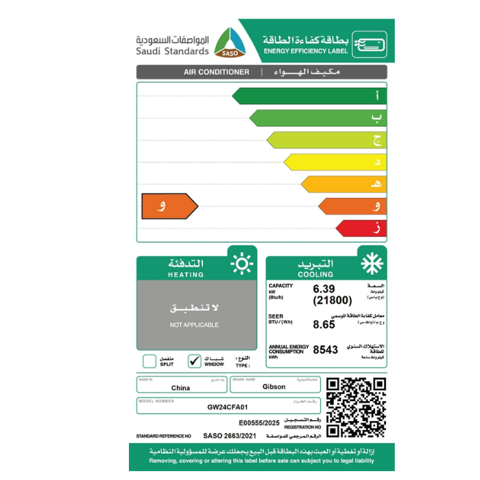 مكيف شباك 24 الف وحدة جبسون روتاري – بارد |
