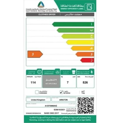 نشافة اريستون امامي 7 كيلو – أبيض :